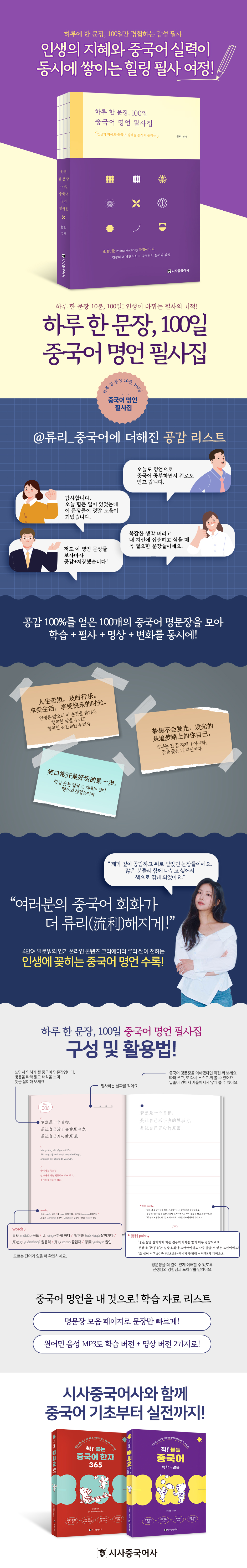 관심과 고민이 가장 많은 주제를 선정하여 관련된 좋은 문장들을 모아두어, 100일 필사로 중국어 실력은