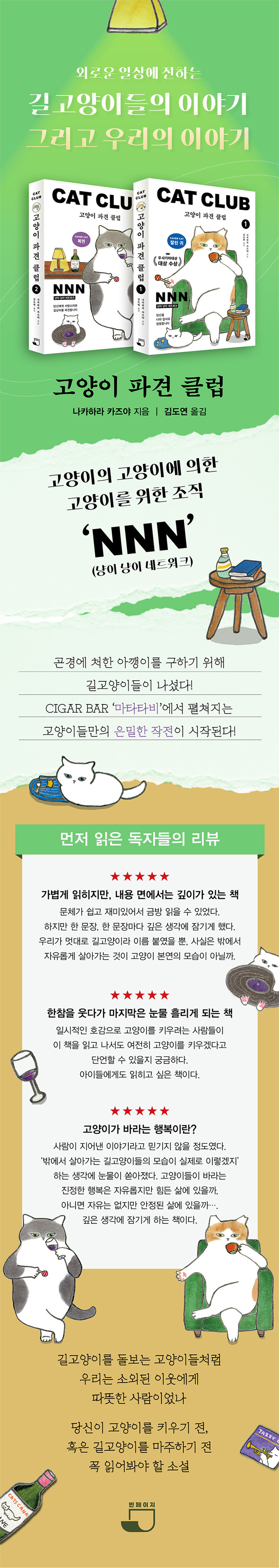 <고양이 파견 클럽1>에서 고양이 세계의 흥미로운 규칙을 엿보았다면, <고양이 파견 클럽2>에서는 길고양이들의 깊은 내면과 선택, 그리고 그들만의 특별한 우정과 연대가 한층 더 깊이 있는 이야기로 독자들을 안내한다.