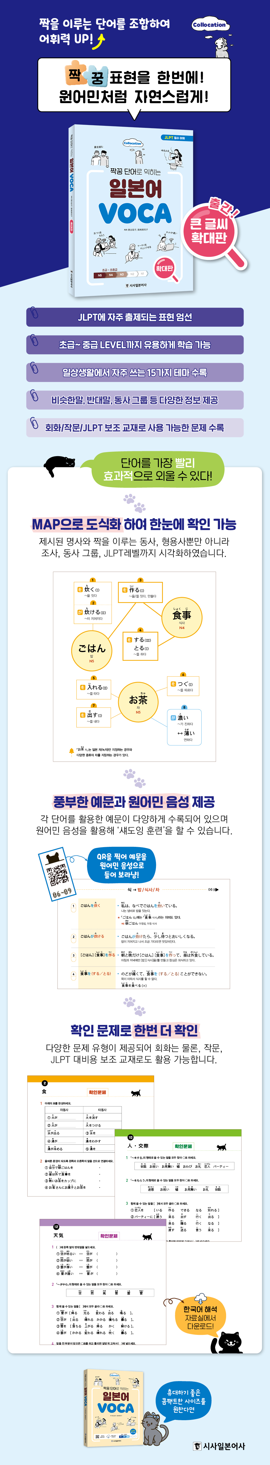 언어는 단순히 단어의 뜻만 알고 있다고 해서 능숙하게 문장을 만들기 쉽지 않습니다. 서로 호응이 잘 되는 표현, 즉 흔히 함께 쓰이는 단어들을 짝꿍처럼 붙여 학습해야 보다 자연스럽고 다양한 표현을 구사할 수 있습니다.